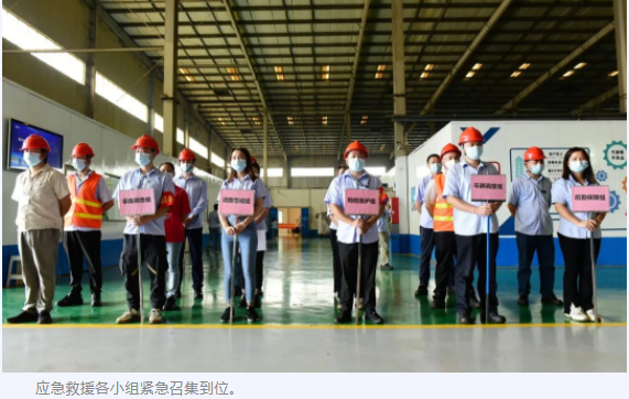 值班人員發現該情況后立即向公司叉車事故應急救援隊報告,事故總指揮員即刻啟動應急預案,5分鐘后,組織搶救醫護組、疏散警戒組、車輛調度組、后勤保障組、事故調查組等多個功能組趕赴現場。